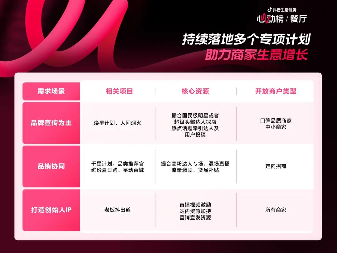 面对消费者的需求升级,心动榜餐厅以“用户心动”为锚点,为商家搭建起“流量+交易”双引擎的增长通道,全方位支撑方法论落地与趋势适配。