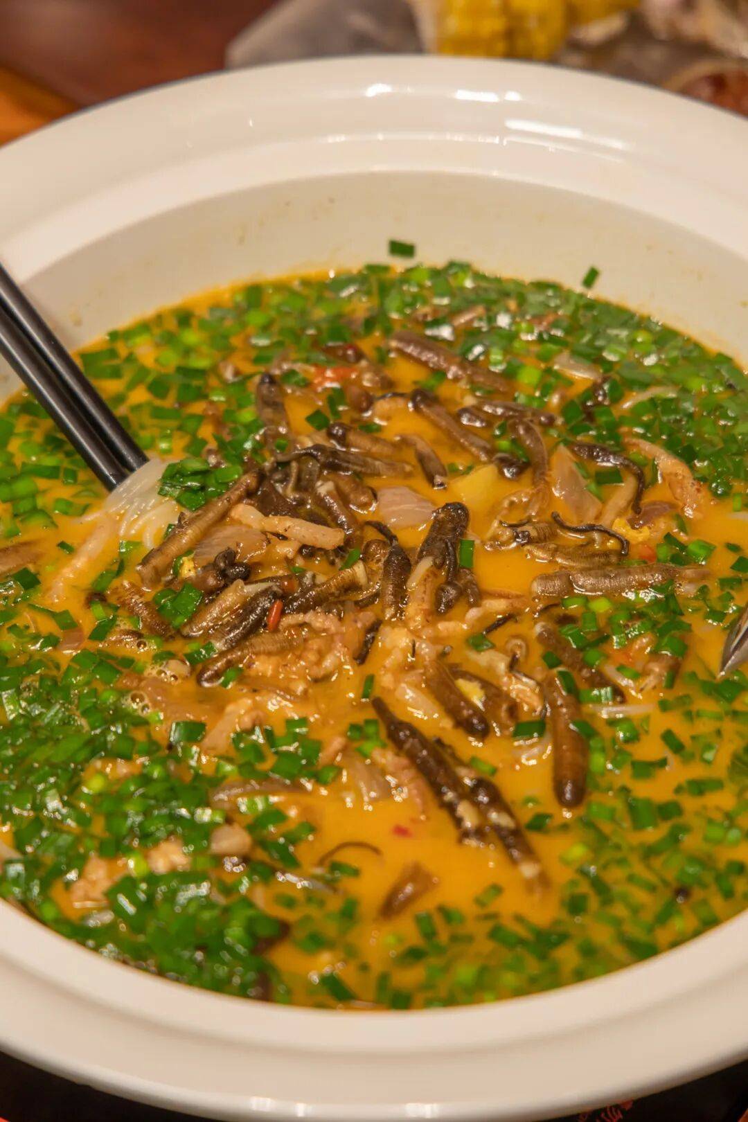 泥蒜,学名沙蚕,是温州滩涂的隐秘珍馐。汤底浓郁鲜香,粉干吸饱汤汁后柔韧弹牙,泥蒜脆嫩,最后撒一把韭菜提鲜,盛满的是渔民与农人的生存智慧,以及市井百姓对生活的热忱。