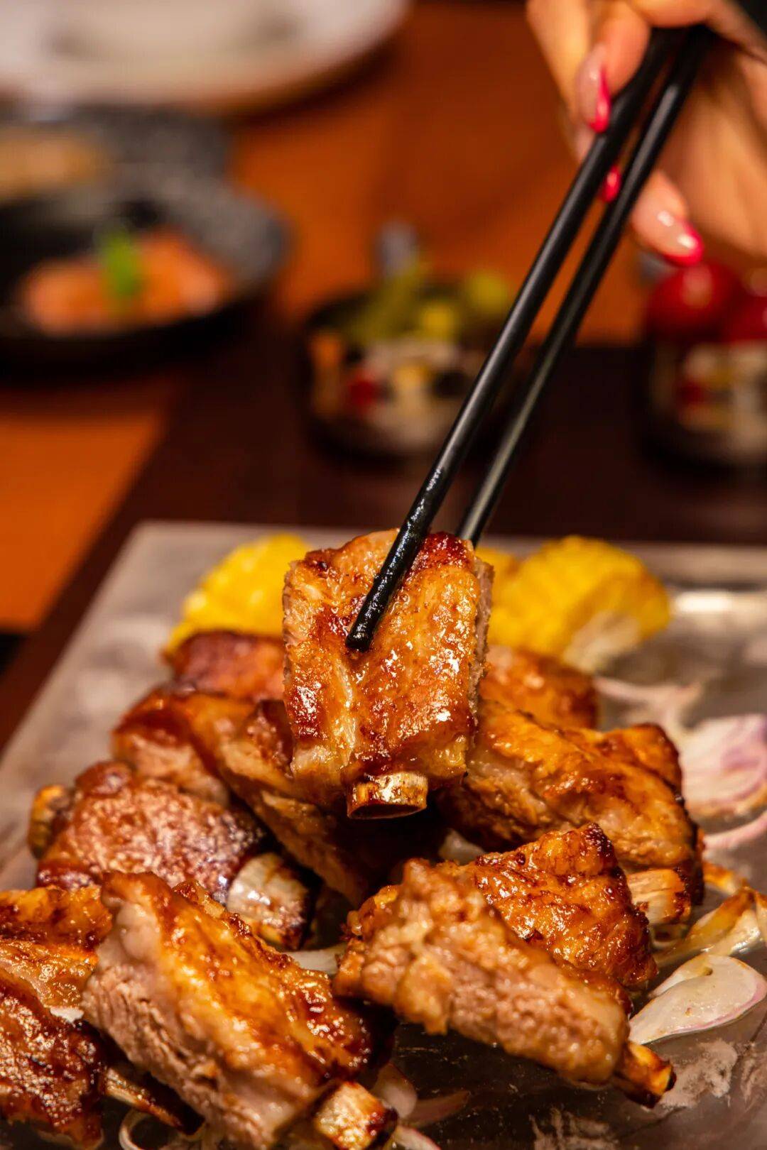 精选西班牙肋排,以美拉德反应锁住肉香,慢烤后肉质酥烂脱骨,脂肪如琥珀般晶莹,一口咬下,肉的奶香在舌尖共舞。